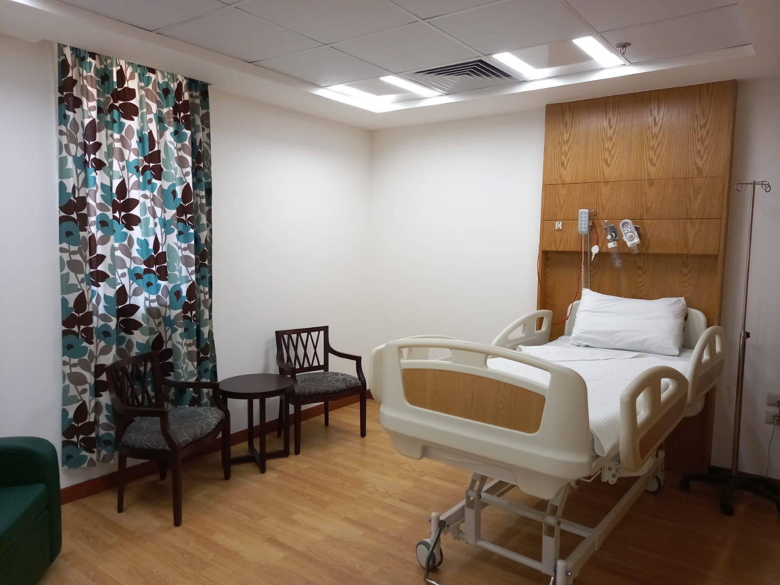غرف فندقية مجهزة بأفضل التجهيزات وعلي أعلي مستوي والتي تضمن راحة المريض والمرافقين لة طوال فترة علاجة داخل المستشفي